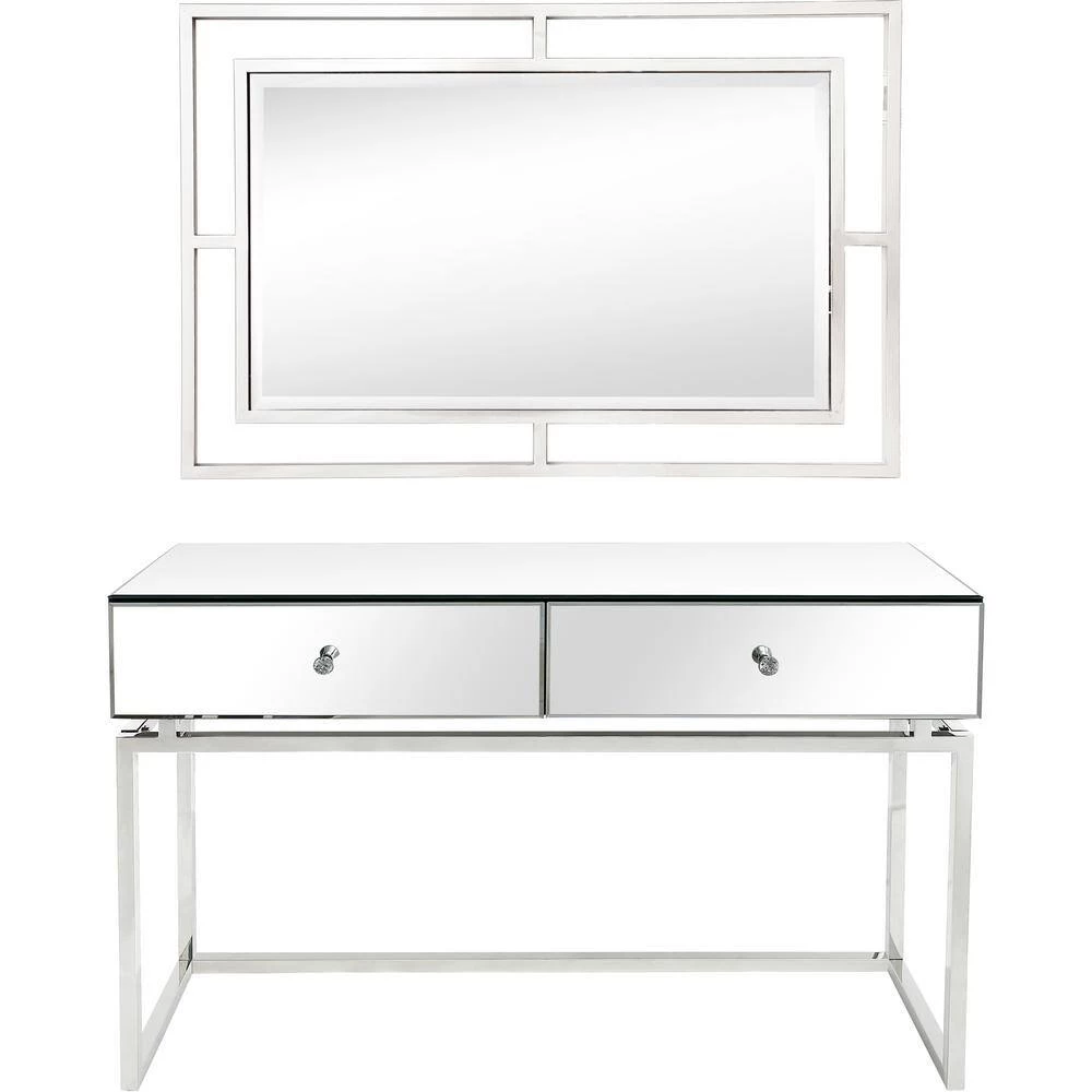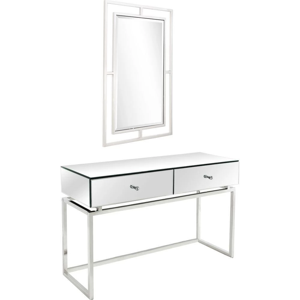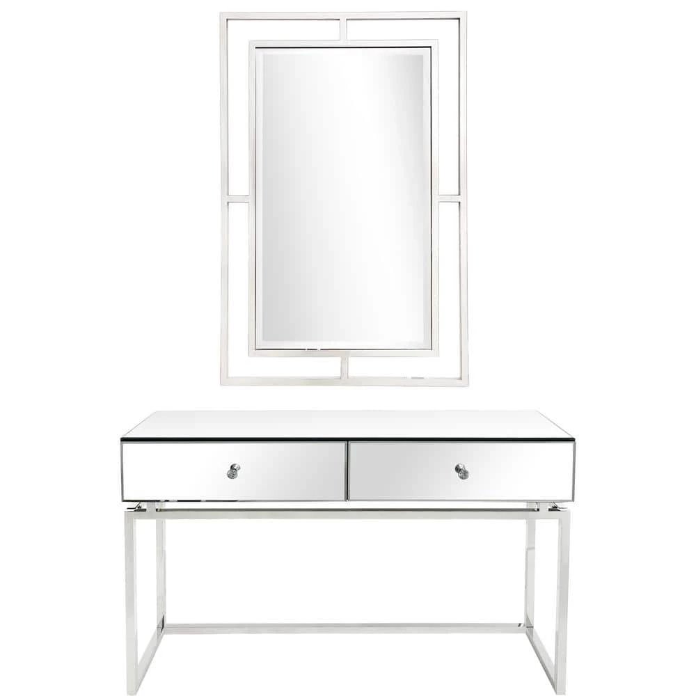 The Addison Console offers the perfect balance between form and function. Resting on a stainless steel base, the Addison gives you a weighty presence on top (with its expansive surface area and dual storage), but the feeling of airiness on the bottom. This mirrored console appears to float and can house many of your fine collectibles. Bring it home today and revel in its majestic beauty. The Addisson Rectangular Accent Mirror features a contemporary design that gives a finishing touch to your well-decorated room. Enclosed in a neat rectangular frame, the mirror has a beveled edge which adds a shine factor to your bedroom or bathroom. The mirror complements a variety of color pallets and blends beautifully into both contemporary or modern decor. Beveled 27.5 in. x 42 in. mirror has a high quality silver backing. Ready to hang either vertically or horizontally with pre-attached hanging mounts.