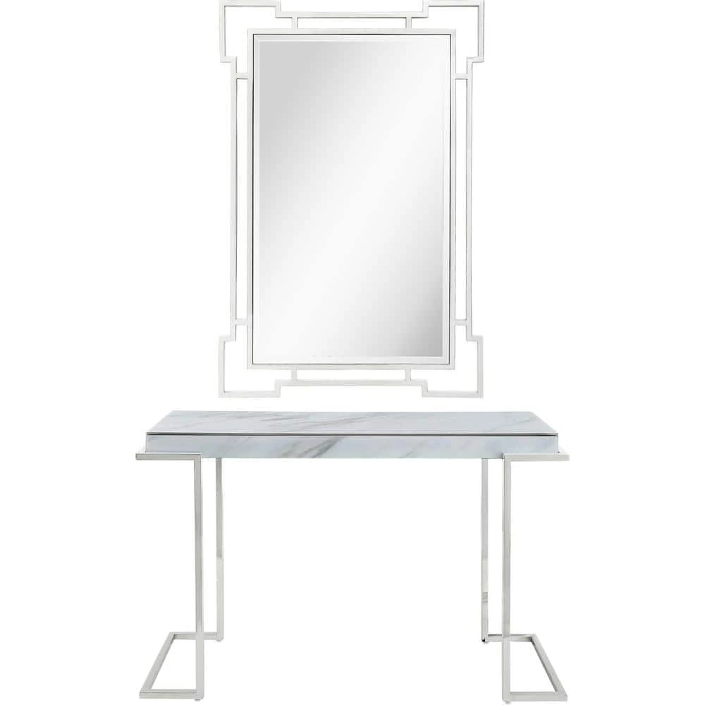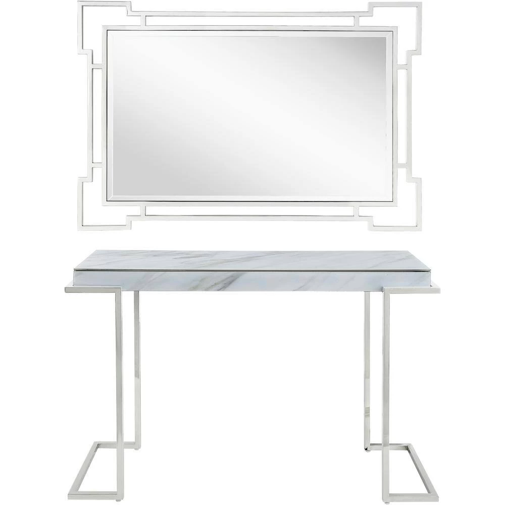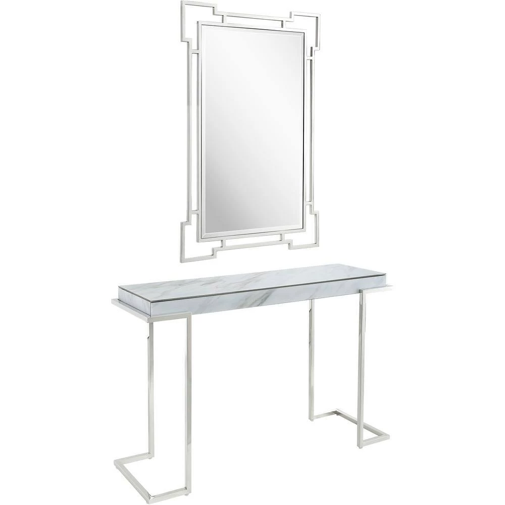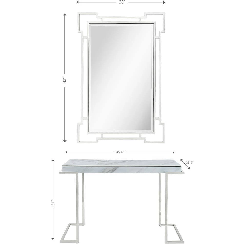 The Aldon Wall Mirror is a beautiful, contemporary piece that pairs perfectly with our Aldon Console Table. At 28 inches in width and 42 inches in length, the Aldon Wall Mirror is features flared corners to add an extra layer of architectural charm to your bedroom, living room or entryway. The Aldon Console spreads it wings with reversed chrome legs. Its light and airy feeling gives you space abound to display your treasures above and below. With almost 4 feet of surface space, the Aldon is sheer perfection!