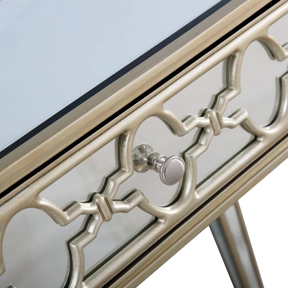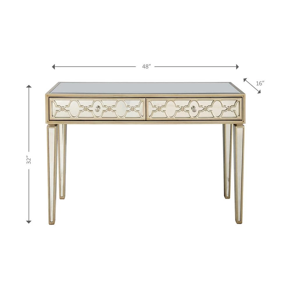 - Champagne finish mirrored console with 2-drawers