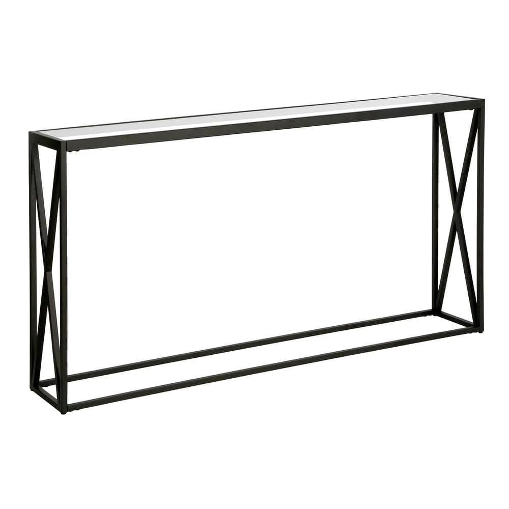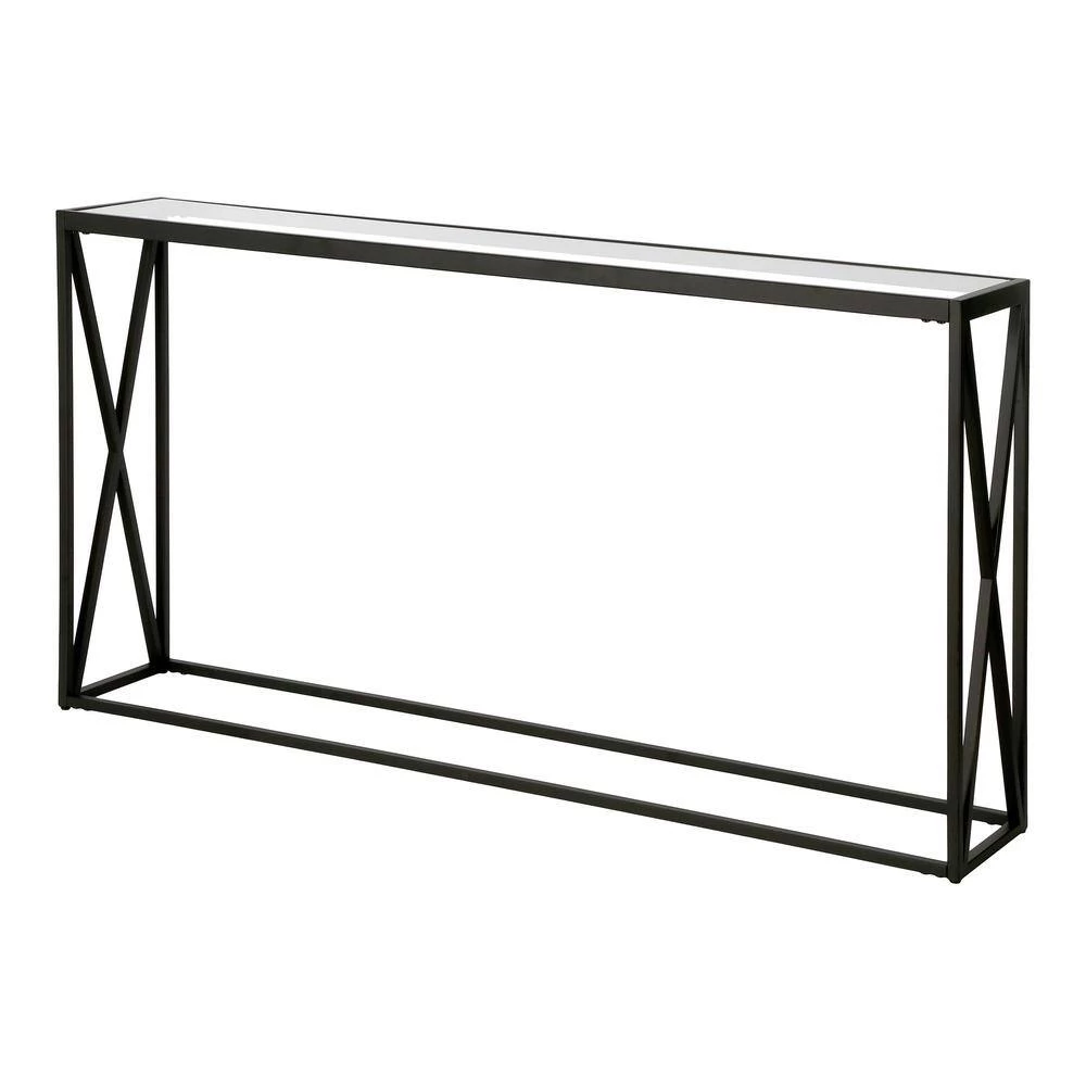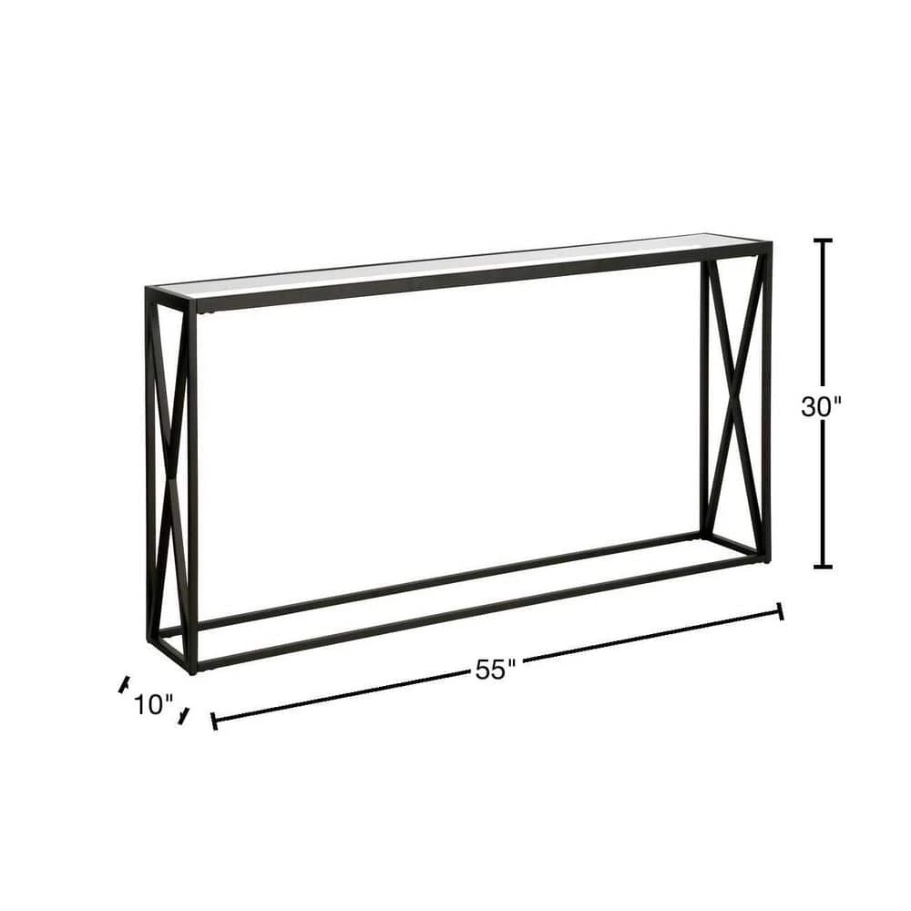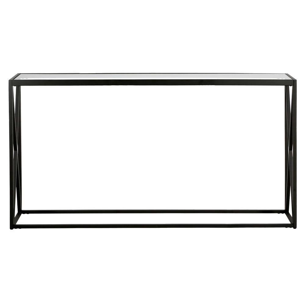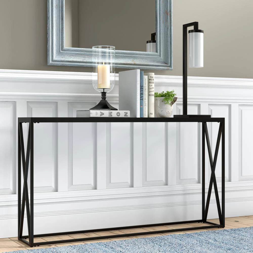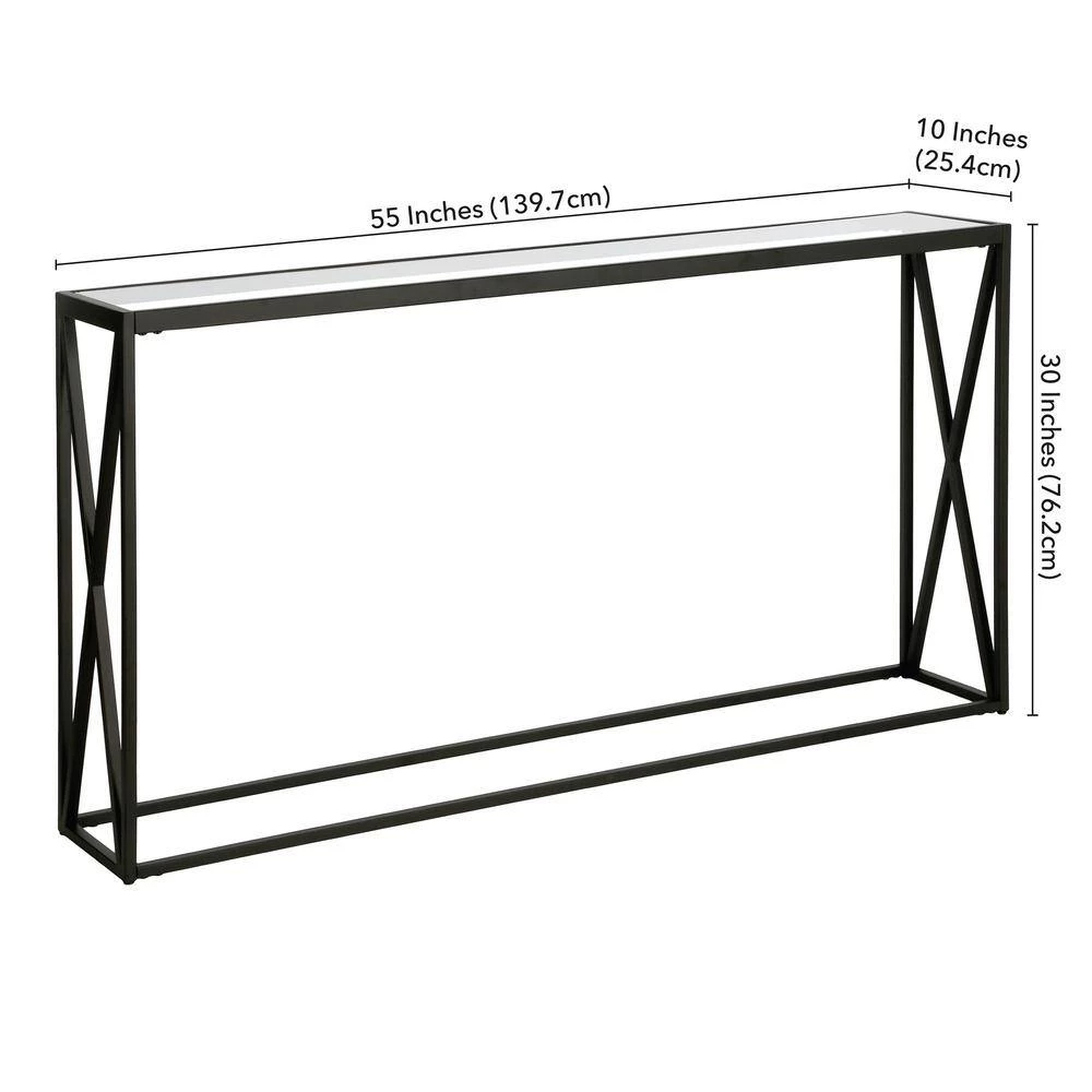 Featuring modern geometic sides, this console table is the perfect addition to your living room or entryway. The glass tabletop can hold up to 40 lbs and will welcome any guest with the beautiful view of flowers, your favorite photos and any other trinket you choose. The neutral metallic finish allows it to blend seamlessly with your existing color scheme and decor style.