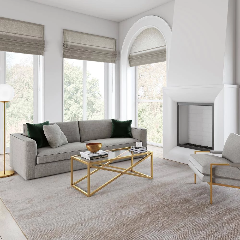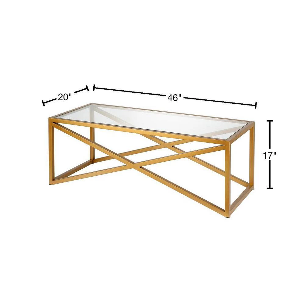 This urban inspired coffee table is the perfect pick for your living room or den ensemble. Its base features x-shaped legs creating geometric interest. The top is a transparent tempered glass which shows off the architectural connection and carries the structured design through the frame.