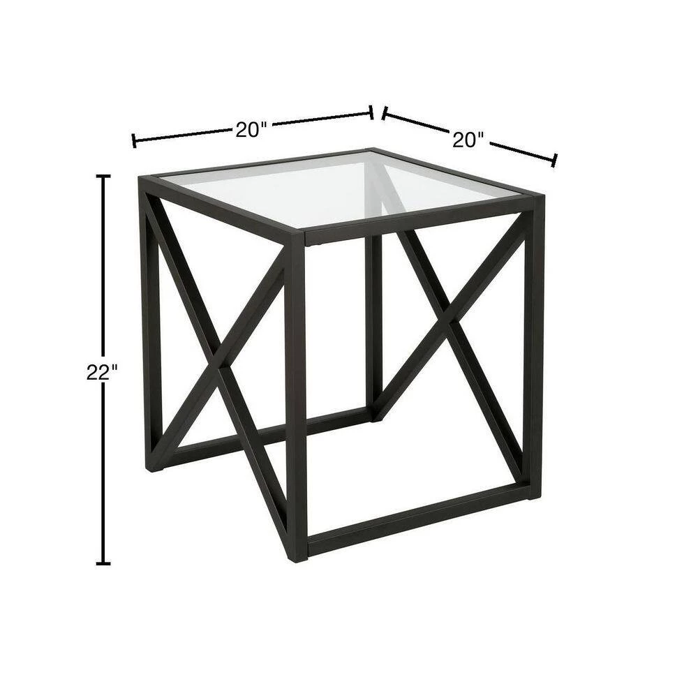 This urban inspired end table is the perfect pick for your living room or den ensemble. Its base features x-shaped legs creating geometric interest. The top is a transparent tempered glass which shows off the architectural connection and carries the structured design through the frame.