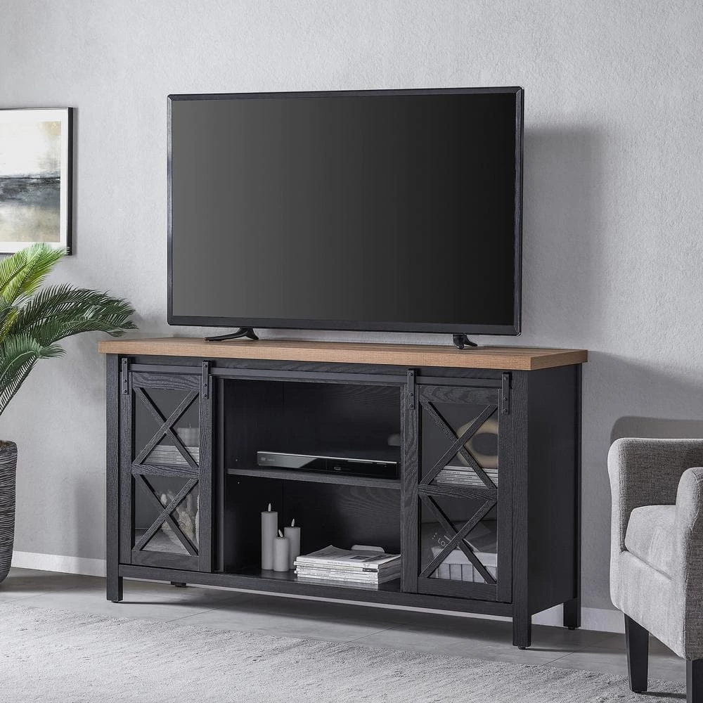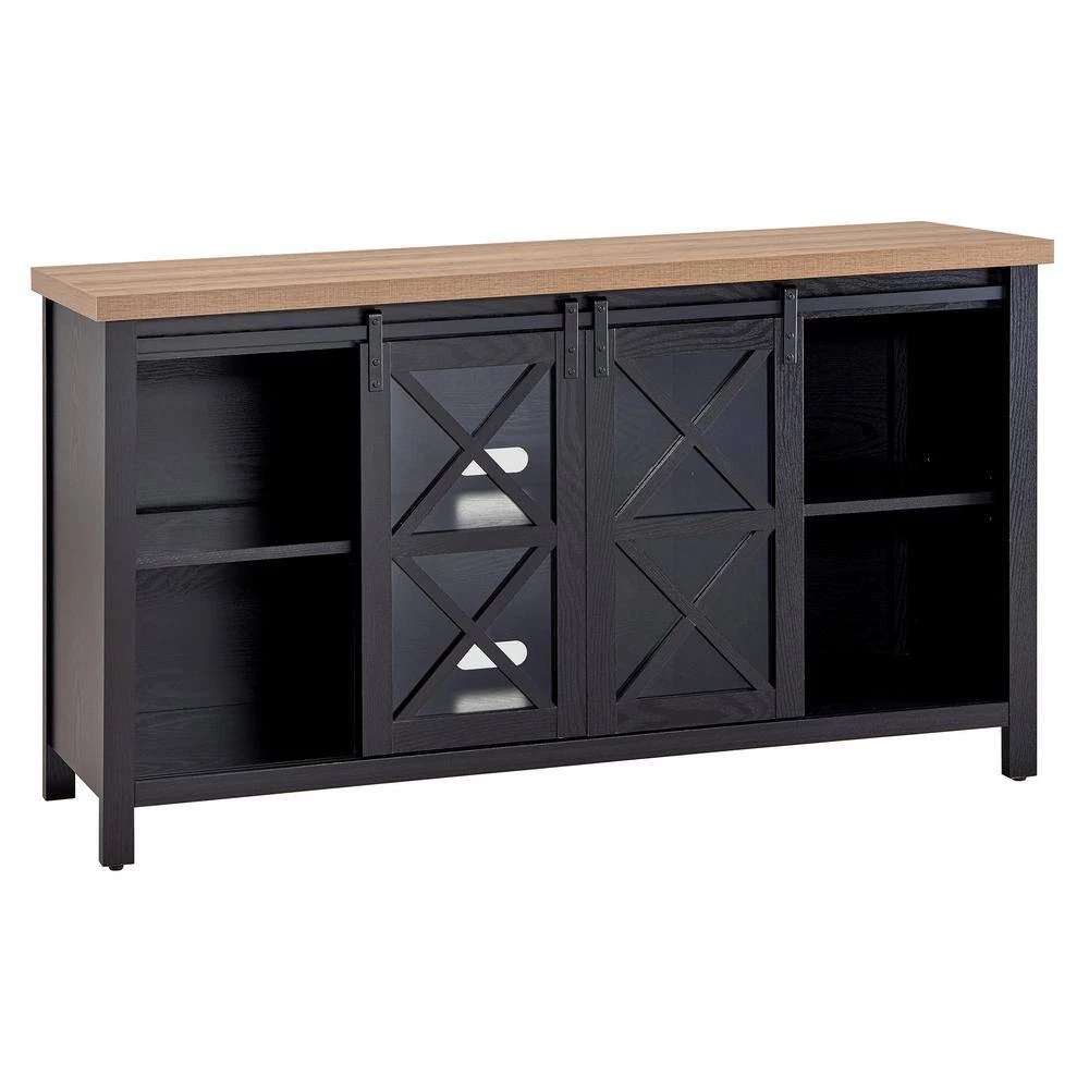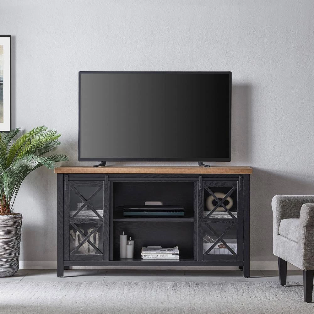 Combine functionality and on-trend design with this sturdy TV stand. Its rich wood tone creates a warm neutral palette that will blend seamlessly into any color scheme, while its functional sliding barn doors add a touch of modern farmhouse whimsy. A must-have for living areas and entertainment spaces, this TV stand sets the stage for the big game, a movie marathon, or that season finale everyone’s been talking about.