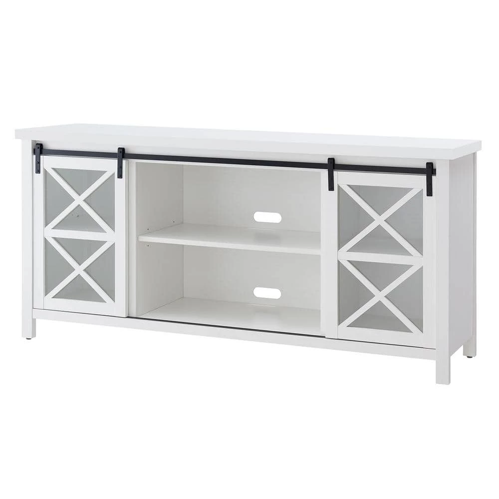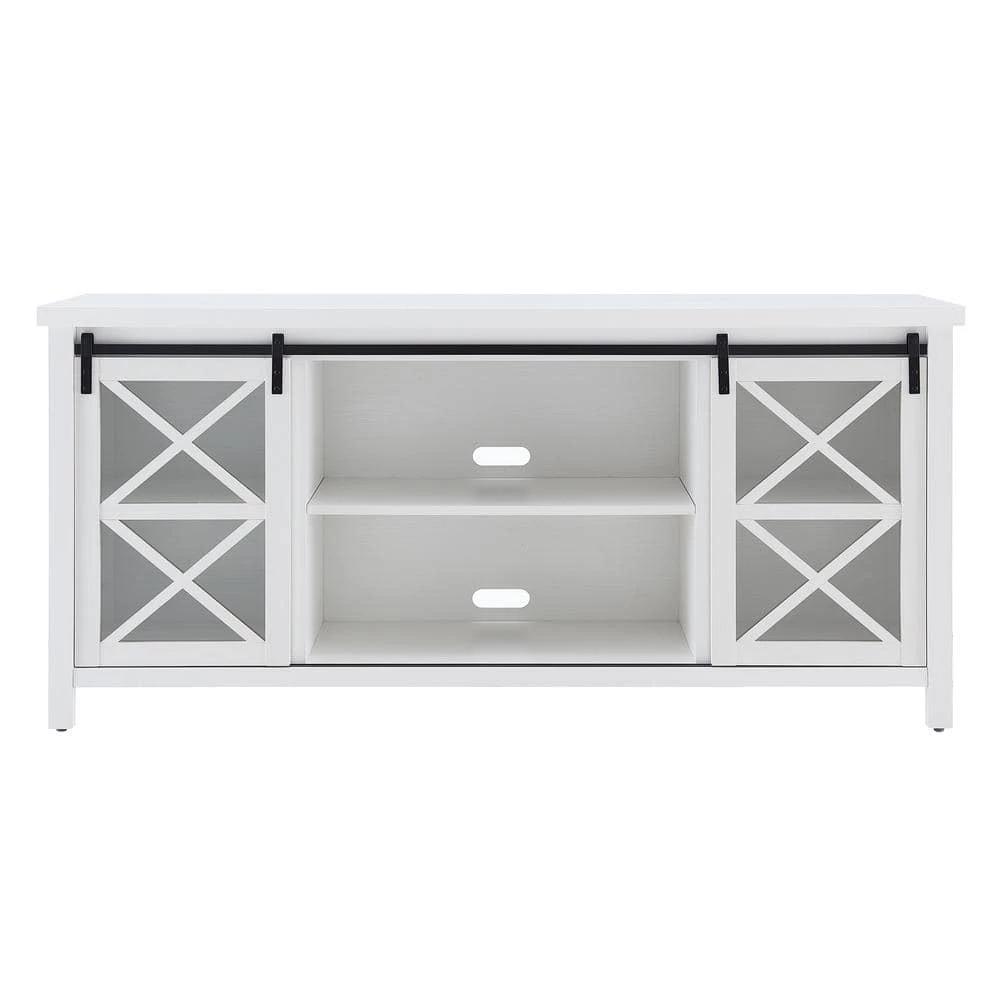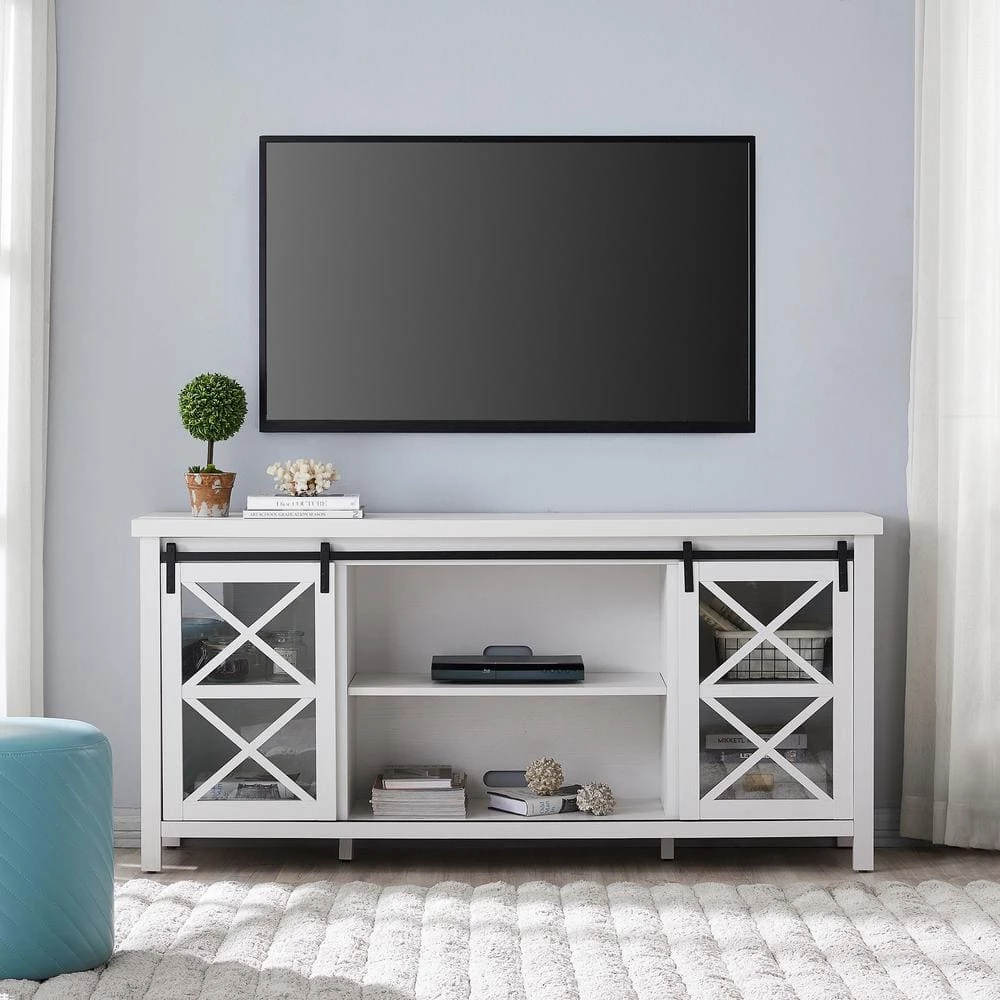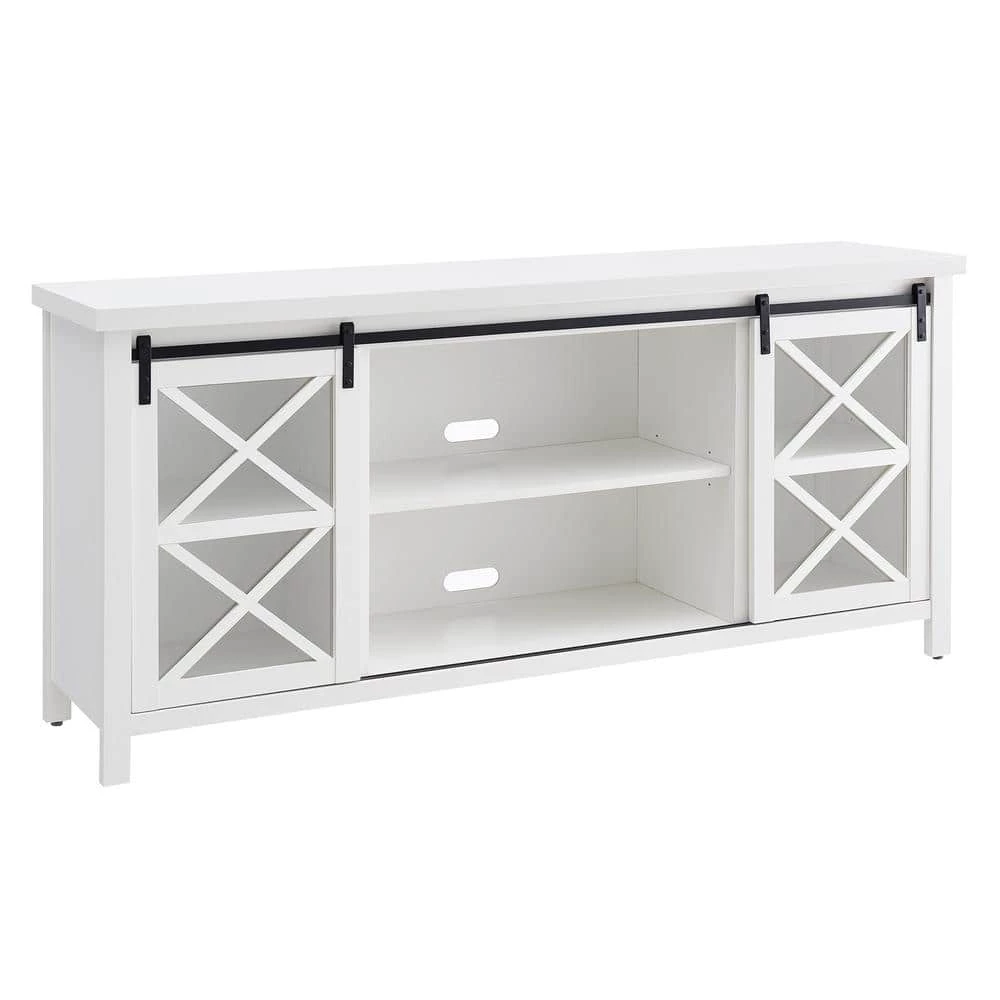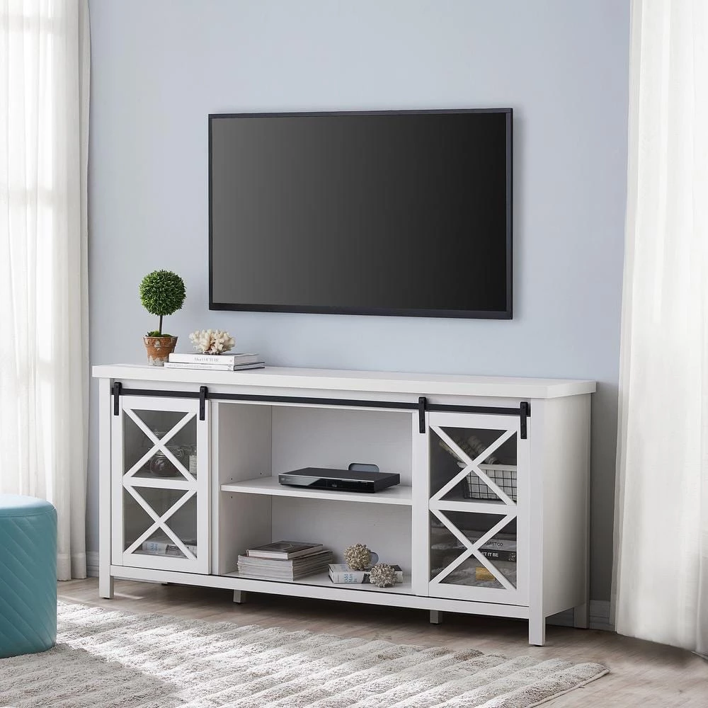Combine functionality and on-trend design with this sturdy TV stand. Its rich wood tone creates a warm neutral palette that will blend seamlessly into any color scheme, while its functional sliding barn doors add a touch of modern farmhouse whimsy. A must-have for living areas and entertainment spaces, this TV stand sets the stage for the big game, a movie marathon, or that season finale everyone’s been talking about.
