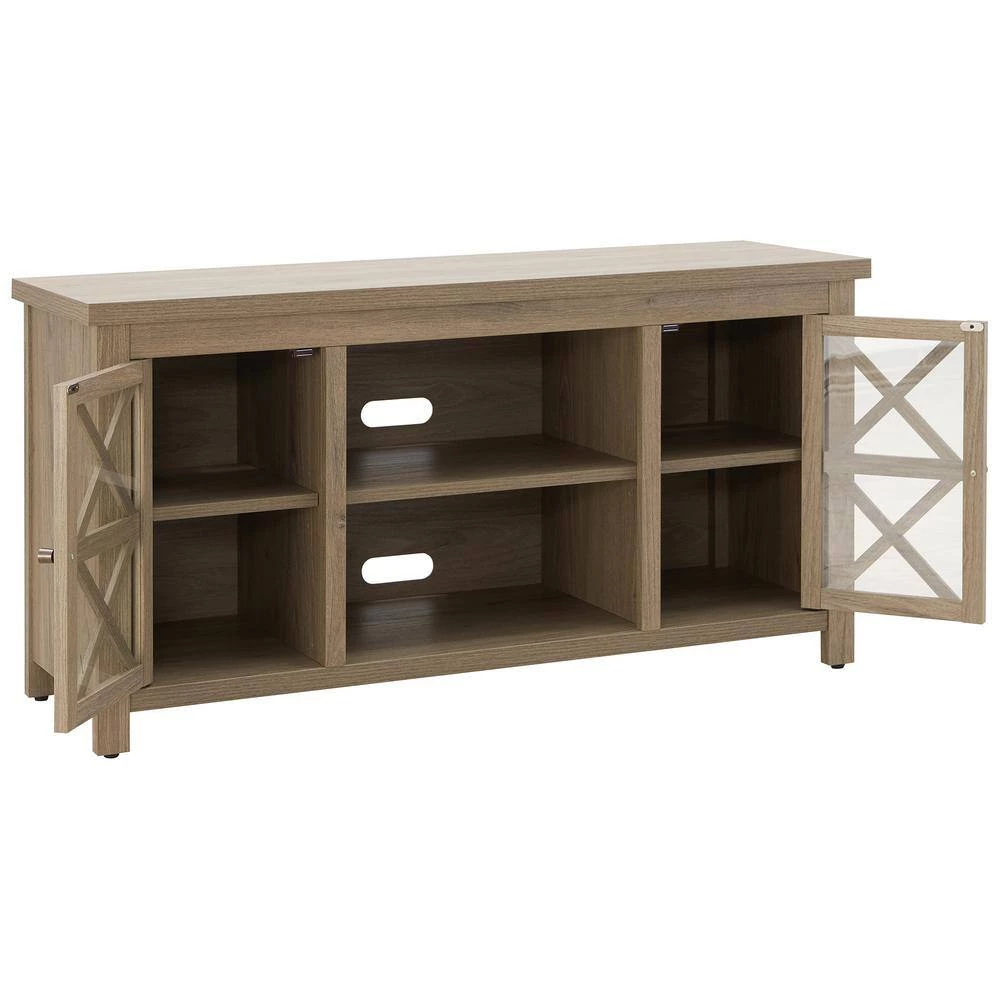 Combine functionality and on-trend design with this sturdy TV stand. Its rich wood tone creates a warm neutral palette that will blend seamlessly into any color scheme, while its crisscross-accented cabinet doors add a touch of modern farmhouse whimsy. A must-have for living areas and entertainment spaces, this TV stand sets the stage for the big game, a movie marathon, or that season finale everyone’s been talking about.