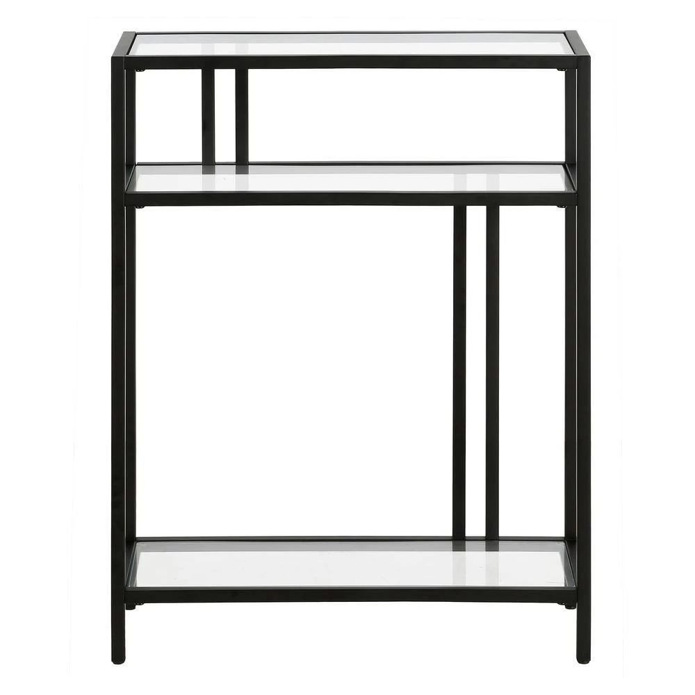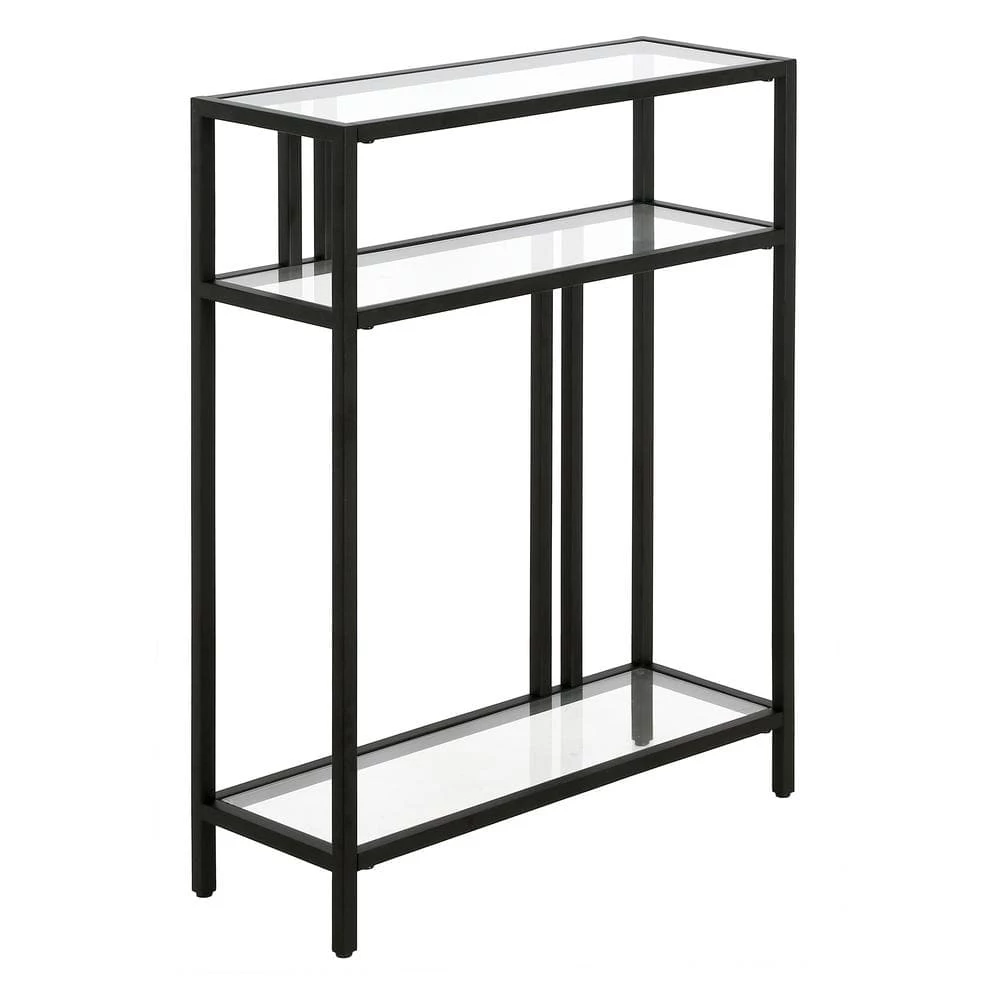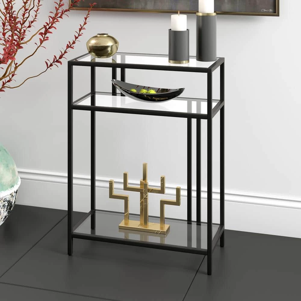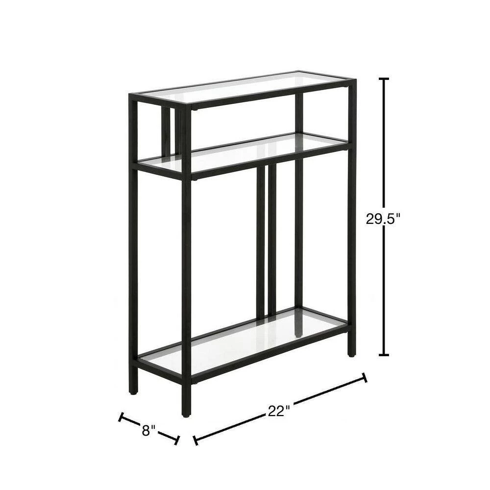 Promo 👍 Cortland 22 in. Blackened Bronze Rectangle Glass Console Table with Glass Shelves by Meyer&Cross 🔥