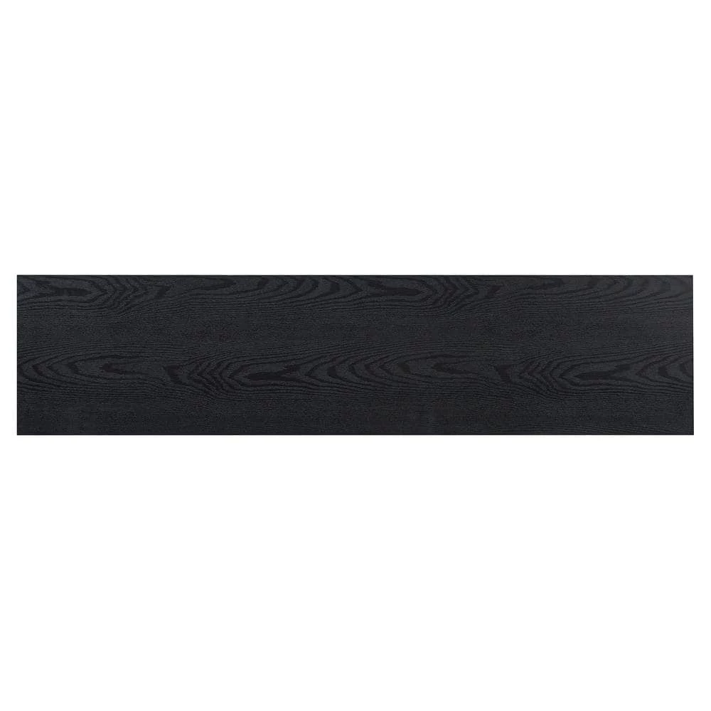 - Constructed of sturdy MDF materials in a handcrafted Black Grain finish.