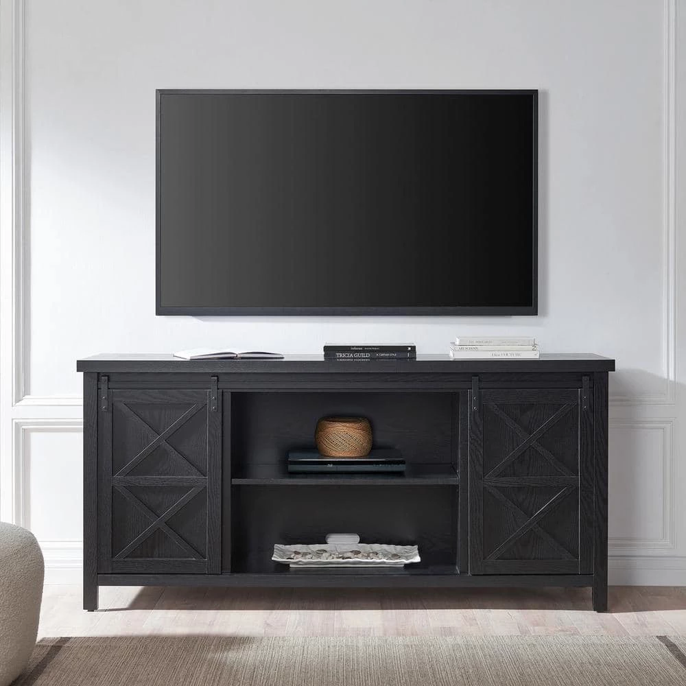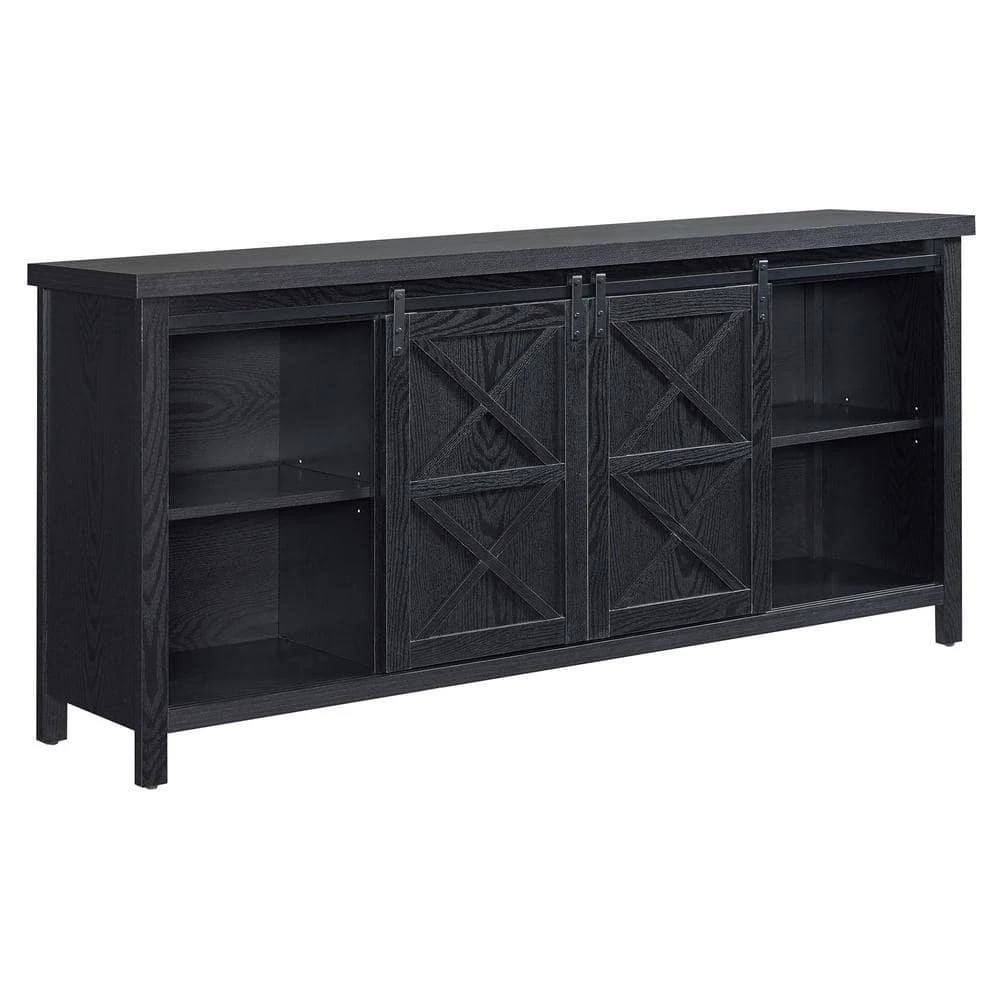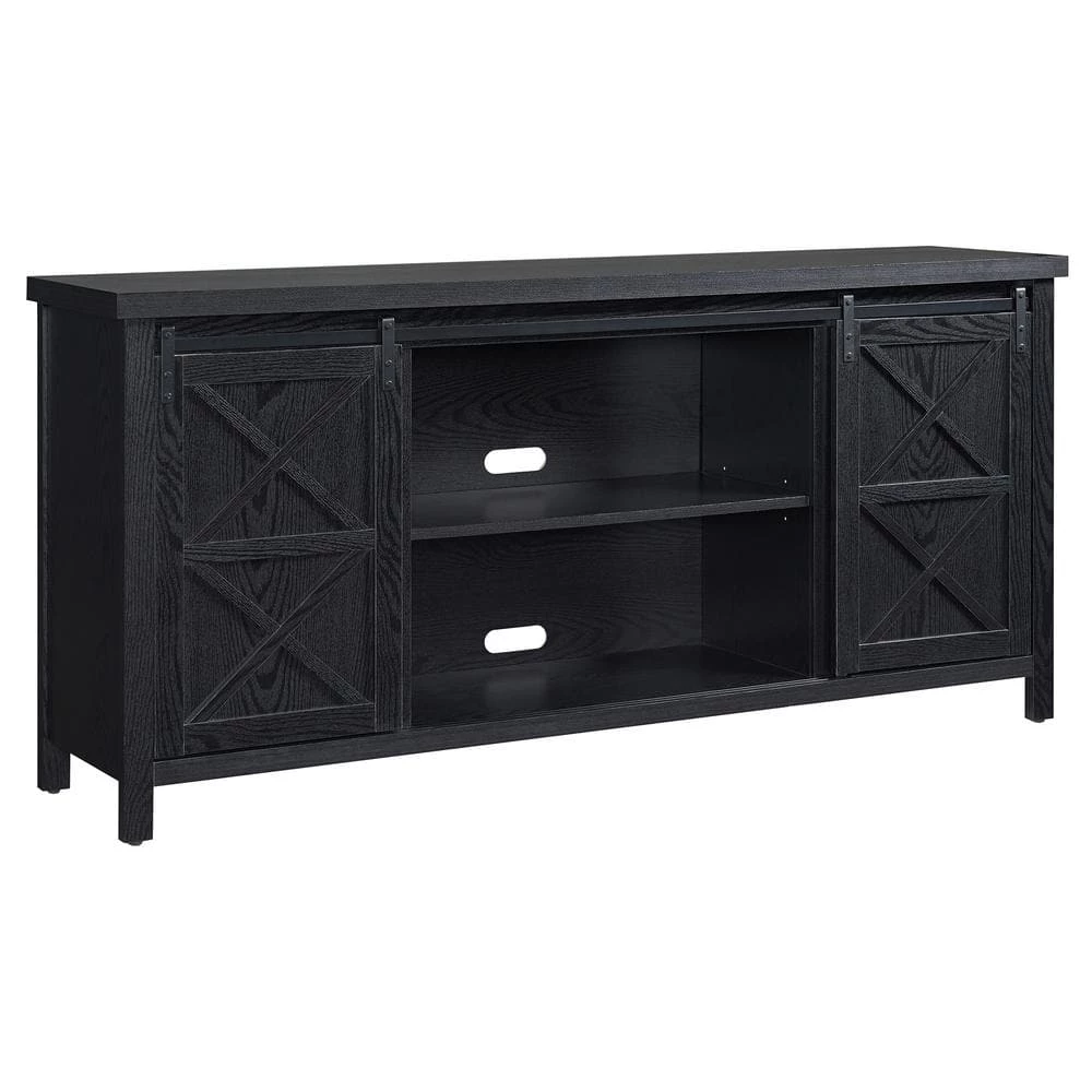 Combine functionality and on-trend design with this sturdy TV stand. Its rich wood tone creates a warm neutral palette that will blend seamlessly into any color scheme, while its functional sliding barn doors add a touch of modern farmhouse whimsy. A must-have for living areas and entertainment spaces, this TV stand sets the stage for the big game, a movie marathon, or that season finale everyone’s been talking about.