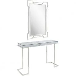 Promo โญ Riley 16 in. Brown Rectangular Glass Console Table with Mirror by Camden Isle ๐