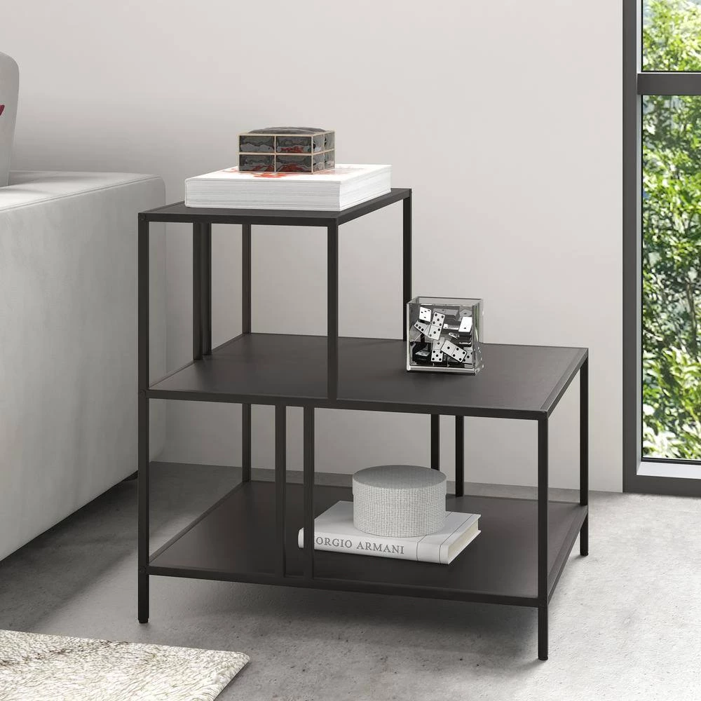 A must-have for contemporary living areas or your modern bedroom, this side table is the perfect piece wherever you need a little extra storage. Crafted from steel, it strikes a clean-lined silhouette that pairs with your existing decor. It boasts a metallic finish and staggered metal shelves for a look that blends with nearly any color palette.