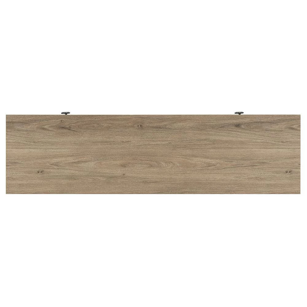 - Constructed of sturdy MDF materials in a handcrafted Antiqued Gray Oak finish.