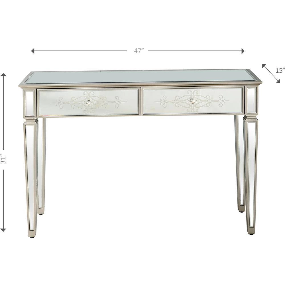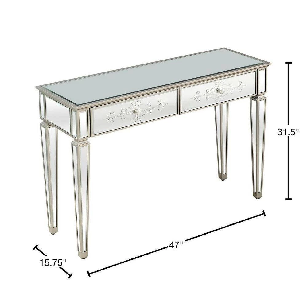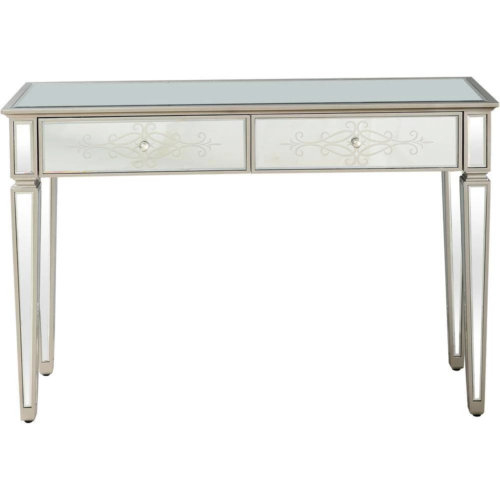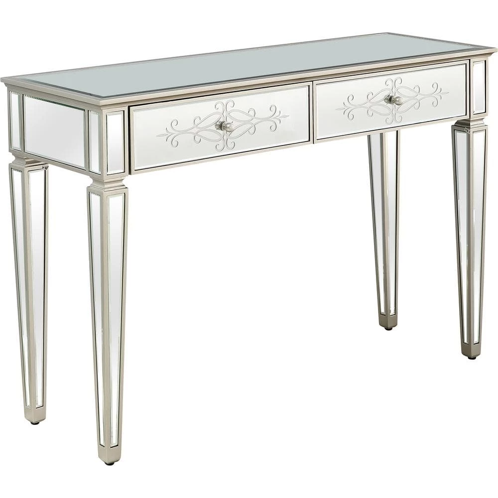 If you’re all about the details, the Miriam Console may be the perfect solution for that empty space in your home. The Miriam Console adds classic charm, with its etched design along each drawer, and contemporary appeal with its chic features everywhere else. With over 47 in. of surface area, the Miriam Console provides the perfect platform to display your treasured collectibles. Unbox your best object d’art and let the Miriam Console do the rest.