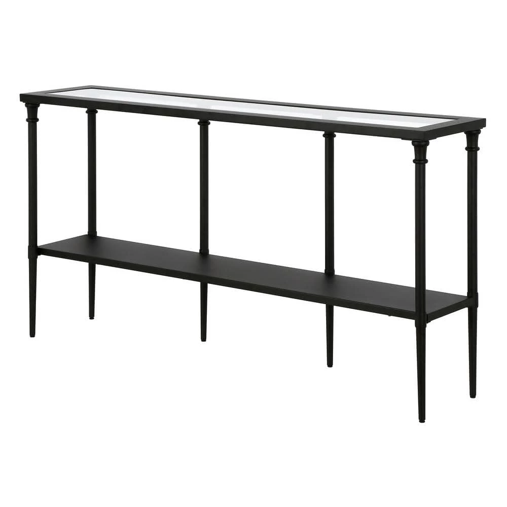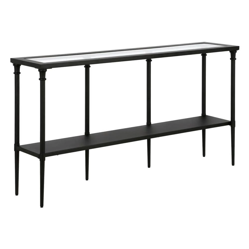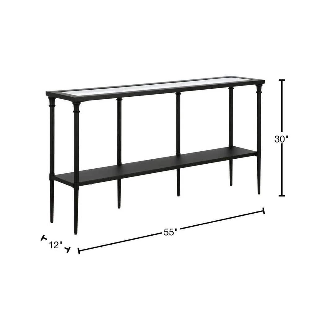 Bring streamlined design to your living room or entryway with this modern console table. Crafted of steel in a metallic finish, this console table features a two-tiered rectangular silhouette with a solid metal shelf perfect for storing mail, keys, knicknacks and more. The glass tabletop provides a perfect platform for framed photos or a pair of stylish lamps.