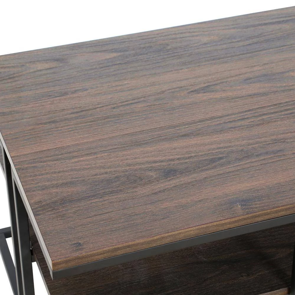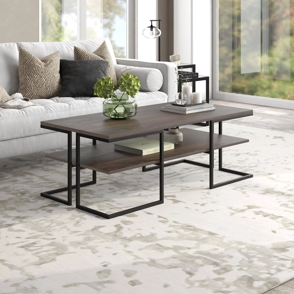 This mid-century inspired coffee table brings a new element of design to your space. With its unique steel frame and wood-toned shelving, this coffee table brings both a vintage and modern feel to your living room space. The lower shelving accentuates its architectural design while allowing you space for decorative items and additional storage.