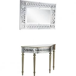 Deals 🔥 Atelier 14 in. Champagne Rectangular Glass Console Table with Mirror by Camden Isle ✔️