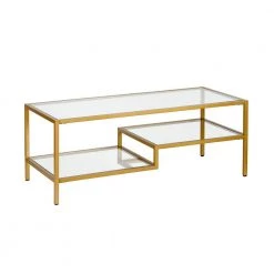 Cheap 🛒 Lovett 45 in. Brass Large Rectangle Glass Coffee Table with Shelf by Meyer&Cross 🌟