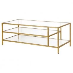 Budget ๐ฅ Levi 44 in. Brass Rectangle Glass Console Table with Storage by Meyer&Cross ๐ฅ