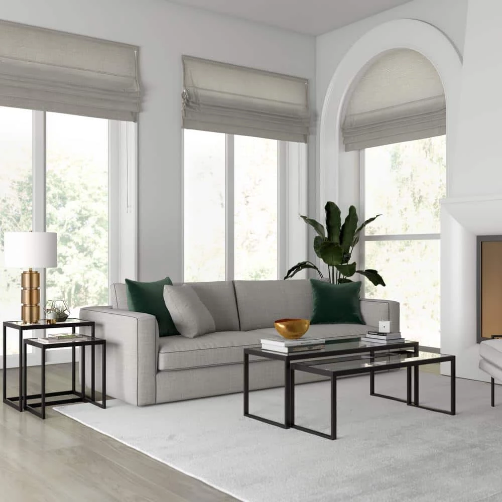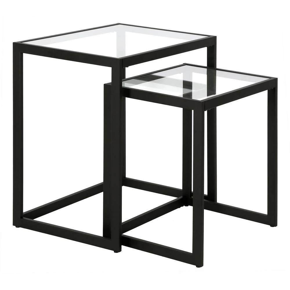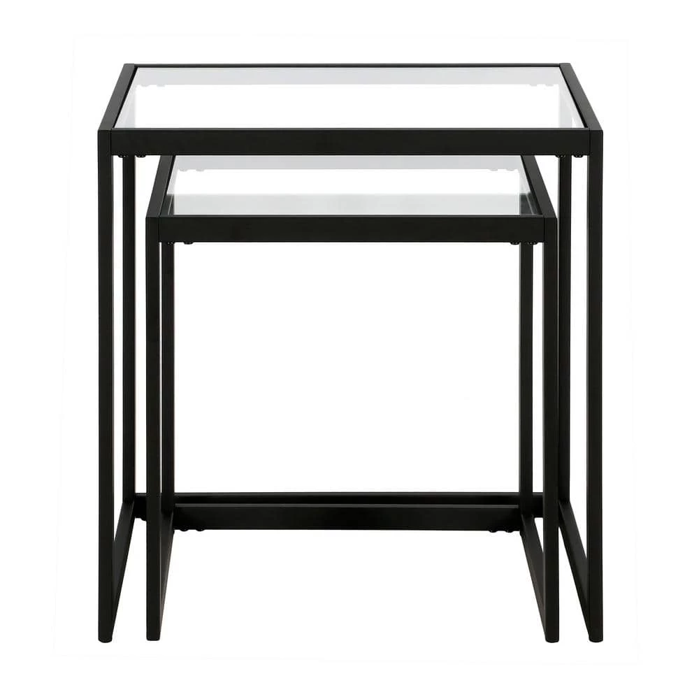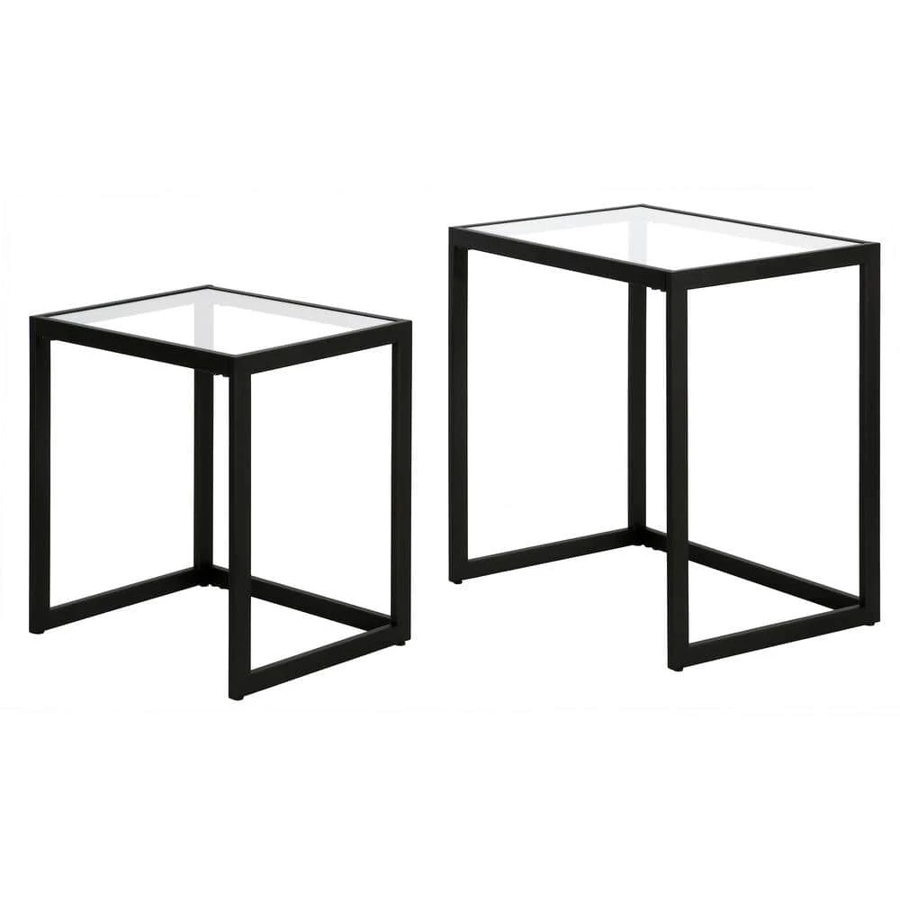 Designed to nest neatly together, these tables have the ability to completely separate, creating versatile pieces to use throughout your living room. The neutral metallic finish and clear glass top pair easily with many color schemes. Clean lines will complement nearly any decor style.