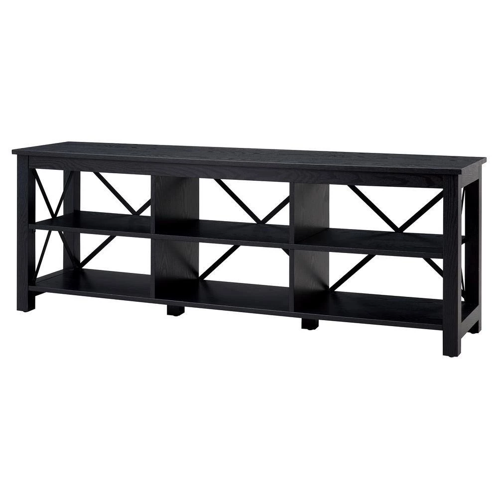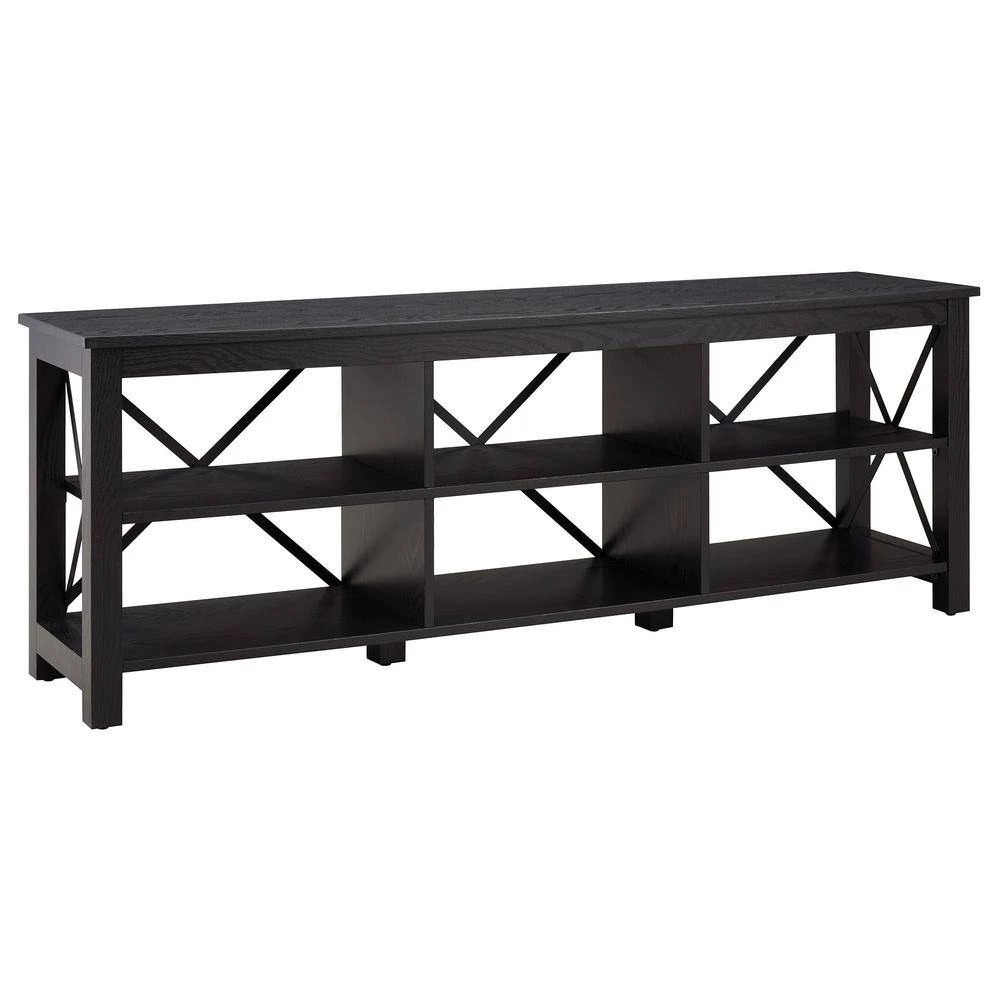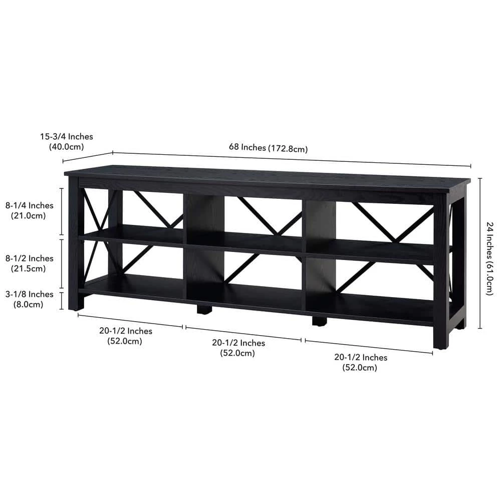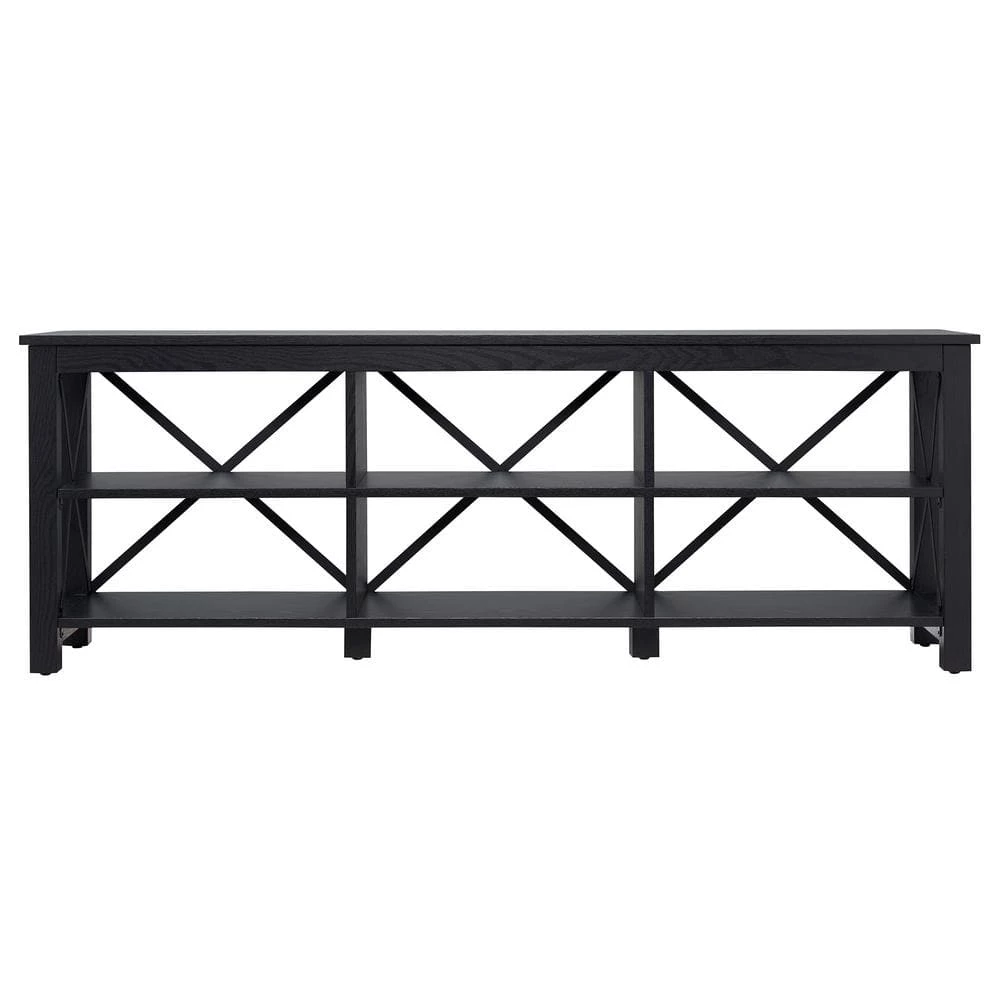 Strong geometric lines set this modern farmhouse-inspired TV stand apart. Its X-shaped black metal accents offset the rich wood tone, creating a warm neutral color palette that will blend seamlessly into any design scheme. A must-have for living areas and entertainment spaces, this TV stand sets the stage for the big game, a movie marathon, or that season finale everyone’s been talking about.
