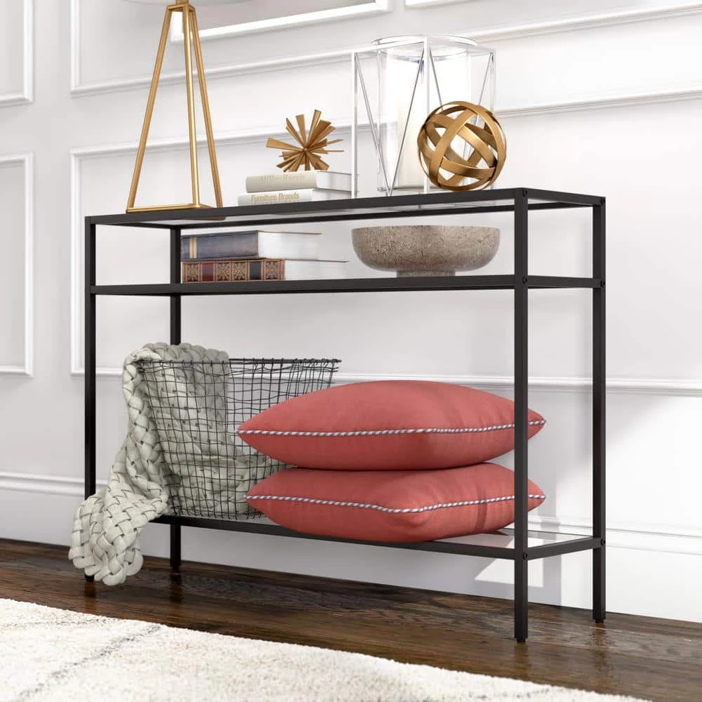 - Table top and shelves are made of clear tempered glass