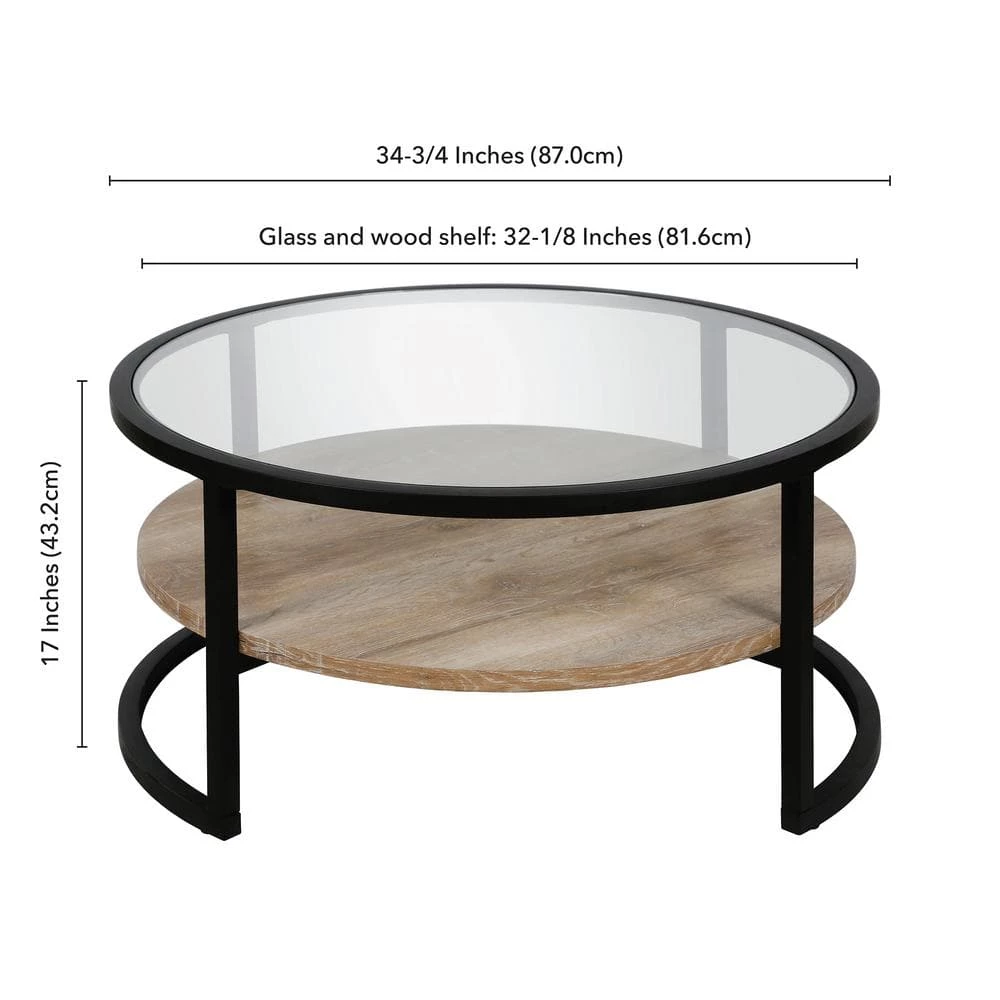 This elegant and classic coffee table is the perfect pick for your living room or den ensemble. Its base mirrors the shape of the tempered glass table top and shows off the architectural connection and carries the structured design through the frame. An industrial style wooden shelf can hold up to 40 lbs. capacity.