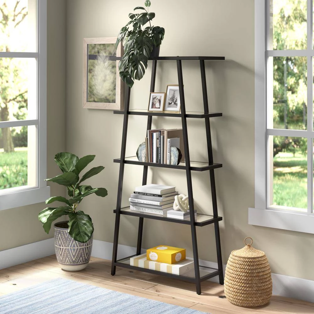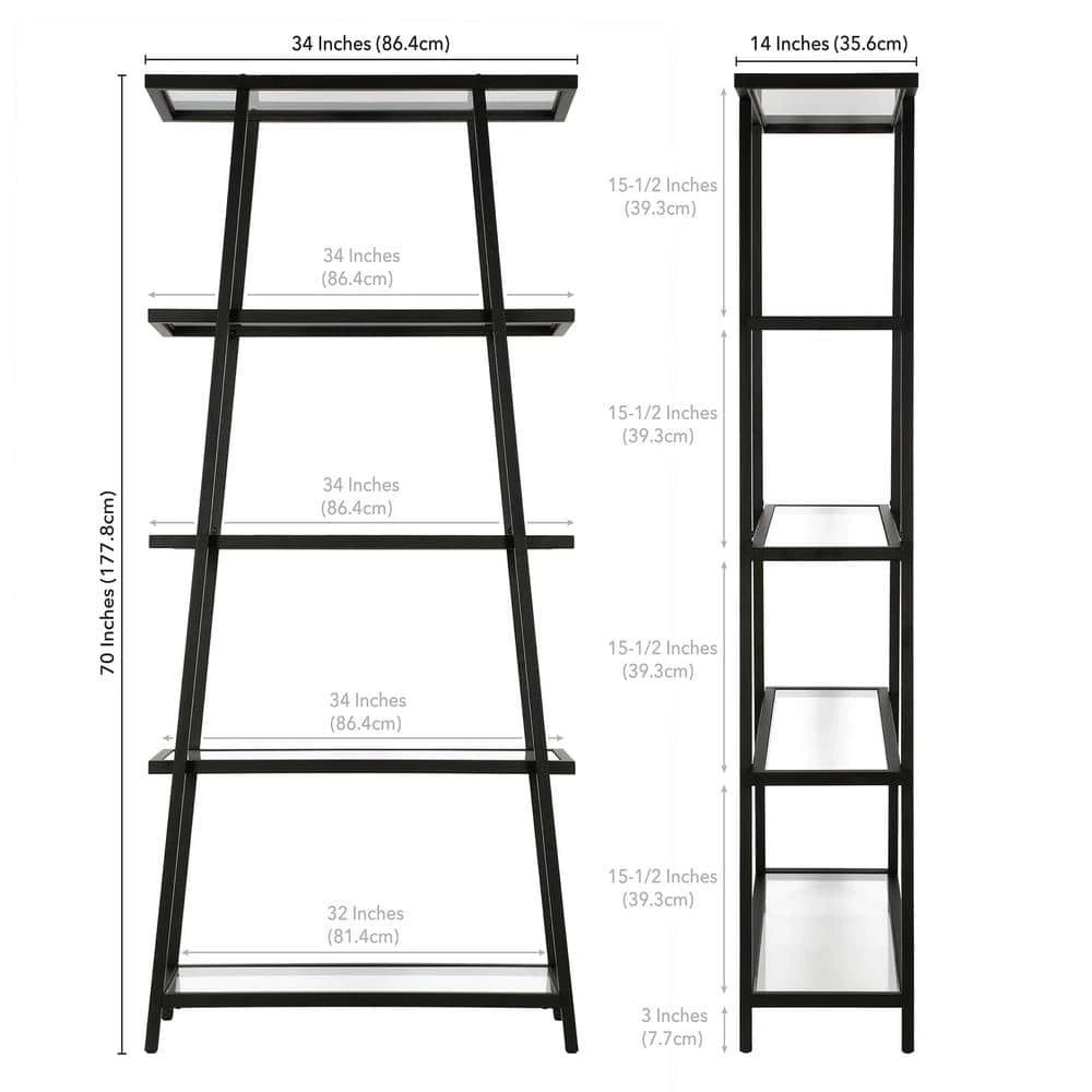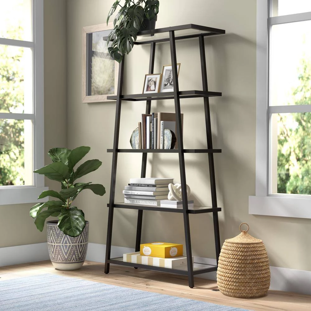 This angled bookcase stands at 70 in. tall and is perfectly designed to fit into any space. Featuring 4-tiers of shelving for displaying your books, pictures, plants and more. Update your storage in style with this modern etagere bookcase.